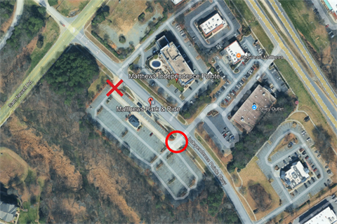 Repairs to one driveway at the Matthews Independence Pointe Park and Ride, located at 9614 Independence Pointe Parkway, will begin Monday, Oct. 13. These repairs will only impact the entrance to the parking lot closest to Sam Newell Road and will not affect service.