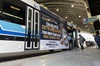 CATS podium used for media events, with the CATS logo on the front